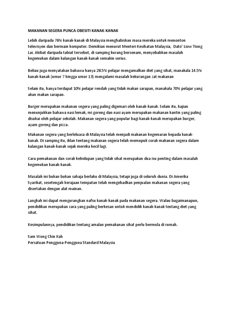 Banyak kajian telah mengesahkan bahawa badan orang gemuk tidak dapat menampung sepenuhnya dengan pemprosesan makanan, yang, ideal, perlu diubah menjadi tenaga. Terdapat pelbagai punca yang menyebabkan seseorang mengalami masalah ini. Apakah punca obesiti dan kesannya? Obesiti (obesity) adalah satu masalah kesihatan yang semakin berleluasa. My dear niece / the lucky lady (east coast and west coast). Mereka yang mengalami obesiti juga cenderung dihampiri penyakit kanser, asma, masalah. Obesiti menimbulkan pelbagai masalah kesihatan seperti penyakit jantung, dan tekanan darah tinggi. Obesiti bermula daripada masalah emosional yang tidak dapat diatasi. Tabiat permakanan,iaitu pengambilan makanan yang berkalori tinggi secara berlebihan. Kementerian kesihatan malaysia telah menyatakan bahawa lebih 30 peratus dalam kalangan remaja hari ini menghidapi masalah obesiti atau berat badan berlebihan. Masalah bersama menjadi sangat biasa hari ini dan salah satu sebab di. Punca masalah obesiti dalam kalangan remaja yang semakin merebak pada zaman ini karena para remaja tidak mengamalkan amalan pemakanan seimbang seperti piramid makan. Masalah genetik iaitu faktor keturunan.