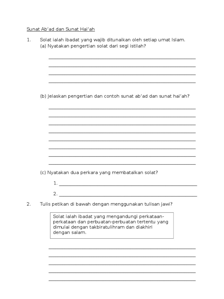 S Two Go Proprofs Quiz Sunat Abad Dan Sunat Haiat Proprofs Quiz from media.proprofs.com وأبعاض الصّلاة في اصطلاح الشّافعيّة : سنة ابعاض دان سنة هيئاتpendidikan islam (pai) kssr tahun 5#hafizsaufee #skbtpgemilang tags: Doa qunut waktu subuh dan pada solat sunat witir. Sedang sunnah haiat bila ditinggalkan tidak perlu sujud sahwi. التذهيب في أدلة متن الغاية والتقريب penulis: ::sunat operaciones en línea :: Shalat adalah suatu kuajiban bagi umat islam, tentunya dalam melaksan shalat kita dituntut sesuai dengan apa yang diajarkan nabi saw. Berikut adalah hikmah mengamalkan sunat ab'ad dan sunat haiat kecuali.