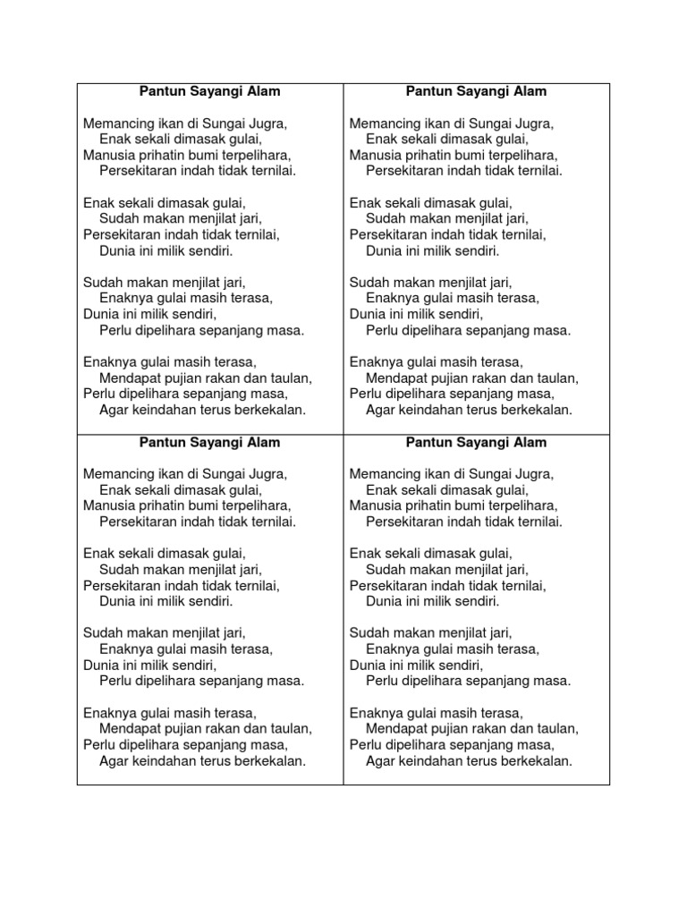 Orang mengail di teluk bulang, apalah umpannya si kulit duku; Hidup sehat dimulai dari diri sendiri. Pantun tentang kesehatan termasuk pantun nasehat. Informasi yang didapat dari teks editorial dan dijadikan isi dari pantun. Rabu, 6 mei 2020 10:06 wib. Setelah itu, celupkan daun jeruk purutbeberapa saat agar daun itu menjadi lunak. Teks pantun pantun soal 1 resti adalah seorang anak yang cerdas dan mempunyai wawasan yang luas. Terus berlangsungnya kekerasan di bumi papua. Teks pantun cuma tersusun oleh 2 elemen sehingga menjadi suatu teks yang utuh, berikut ini ada beberapa struktur teks pantun: Menyunting teks pantun yang dimaksud pada tulisan ini adalah membuat pantun dari teks puisi, syair, dan gurindam. Sebuah pantun menggunakan bahasa sebagai media untuk mengungkapkan makna yang ingin disampaikan. Pantun biasanya dapat difungsikan untuk berbagai maksud dan tujuan. Pantun dari puisi hujan di bulan juni pada puisi hujan bulan juni, sapardi djoko damono ingin menyampaikan pesan rindu yang tertahan dengan bahasanya yang sederhana, tetapi.