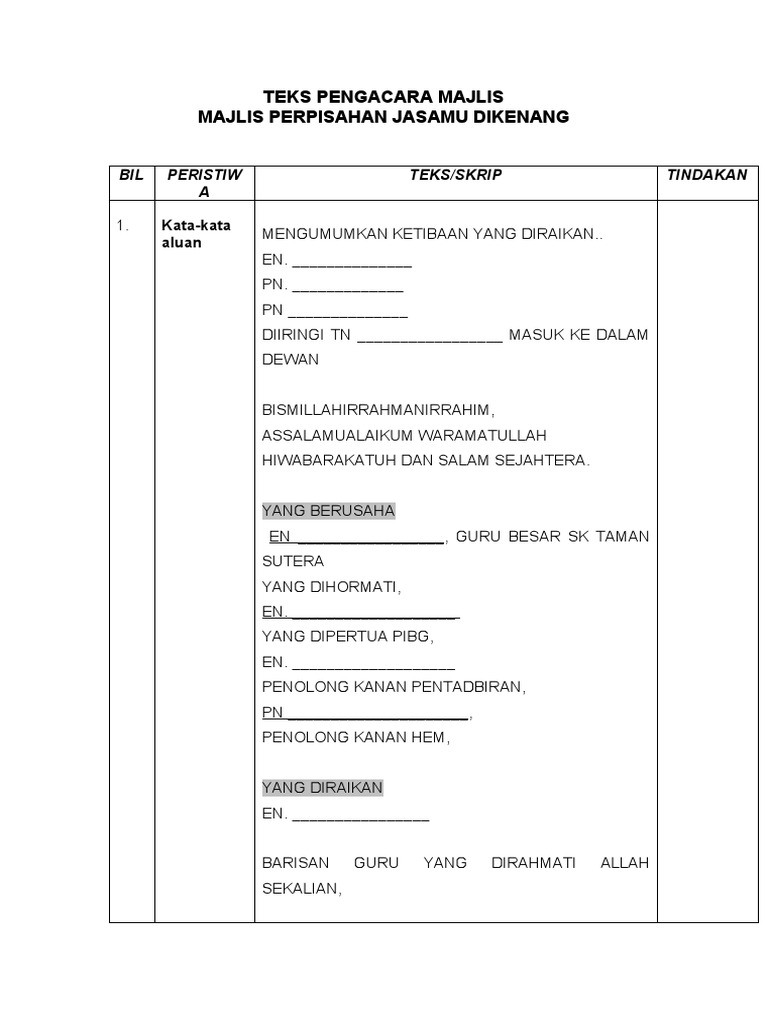 Teks pengacara majlis program seminar keselamatan; Tiap pertemuan pasti ada perpisahan itu adat, itu lumrah kehidupan begitulah rentetan perjalanan. Persaraan guru teks ucapan majlis perpisahan. Teks pengacara majlis hari anugerah kecemerlangan; Majlis perpisahan sempena pertukaran encik muhammad hissam bin sani. Berikut adalah doa majlis perpisahan dan pertukaran guru yang sangat sesuai dibaca semasa majlis perpisahan. Kata kata perpisahan pertukaran tempat kerja j desain rumah. For more information and source,. Teks pengacara majlis majlis perpisahan guru pindah perpisahan diiringi dengan air mata mak milah. Teks pengacara majlis majlis perpisahan jan 2018. Contoh teks perpisahan guru besar. Teks pengacara majlis jamuan akhir tahun kgk 2014 sk bandar endau 14 november 2014 lanjut beach resort rompin. Teks ucapan majlis perpisahan pegawai polis.