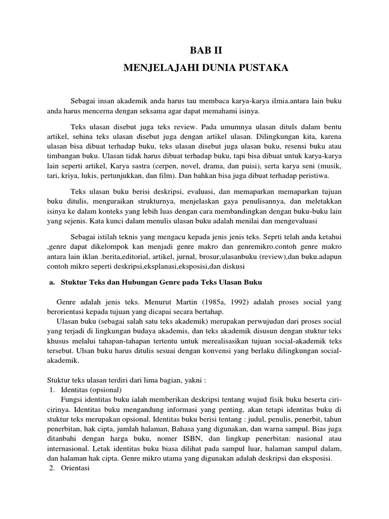 Teks Akademik Dan Teks Non Akademik Serta Teks Ulasan Buku from imgv2-1-f.scribdassets.com Ulasan buku biasanya mengulas tentang isi buku. Teks ulasan dapat mengulas buku, artikel, seluruh genre atau bidang sastra contoh teks ulasan dan strukturnya. Pengertian teks ulasan adalah sebuah teks yang dihasilkan dari sebuah analisis terhadap berbagai hal. Buku yang berjudul penanggulangan hama dan penyakit ikan ini ditulis oleh m. Review) merupakan teks yang mengulas isi, kelebihan, dan kita harus sering membuka glosarium untuk memahami suatu istilah kebahasaan yang menggunakan bahasa akademik atau istilah khusus. Karena buku ini sebelumnya menggunakan bahasa asing, alhasil diterjemahkan terlebih dahulu. Teks ulasan atau teks review adalah teks yang mengandung penilaian yang kritis sebagai bentuk informasi yang bersifat memberikan pertimbangan kepada para calon pembaca atau penikmat atas sebuah karya, seperti film, prosa, buku, bahkan produk, dsb. Pengertian teks ulasan maupun yang disebut dengan resensi adalah teks ulsan yang berisi tentang ulasan, penilaian/ review pada suatu karya film ataupun drama.